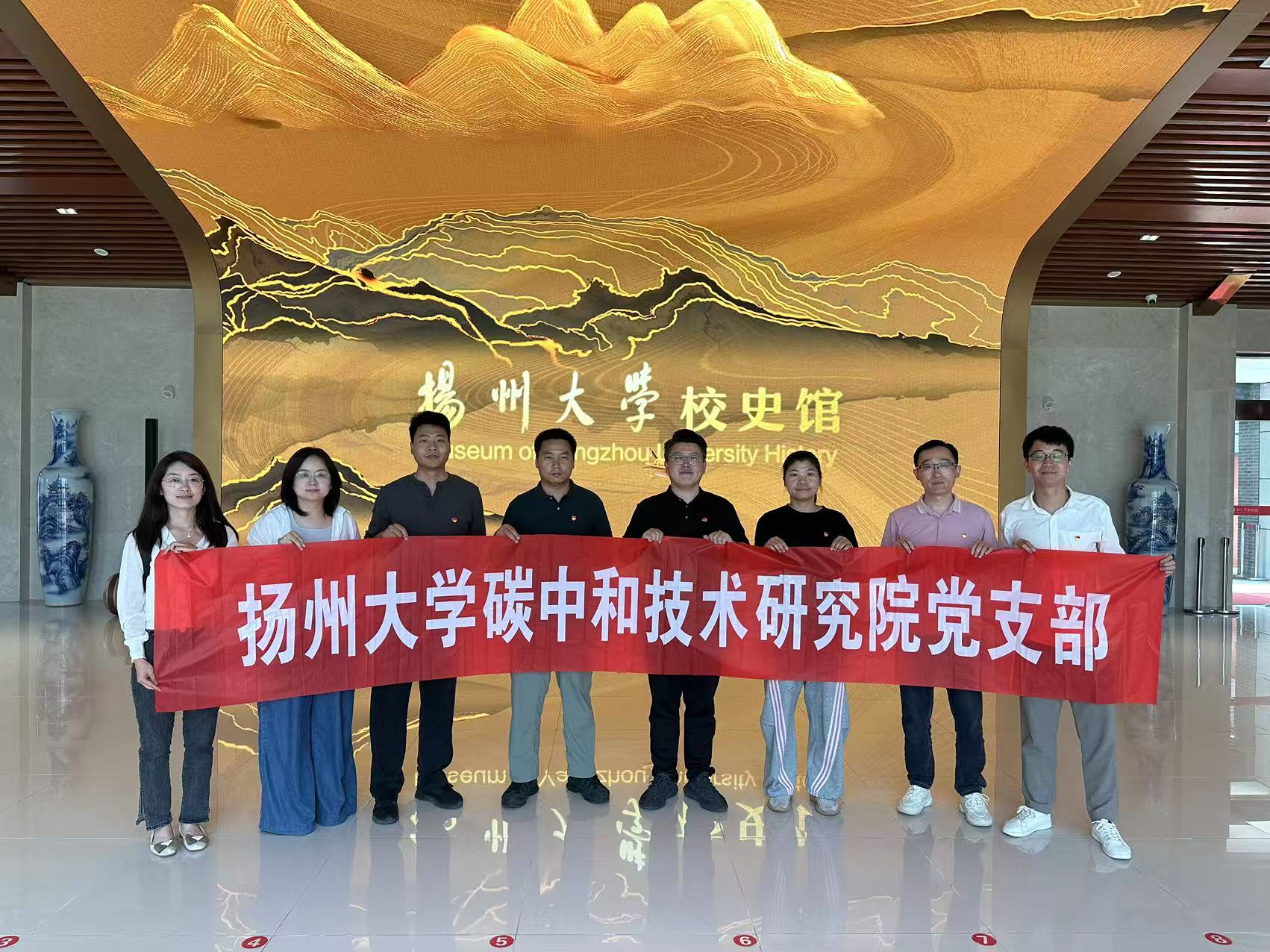2025年5月28日下午,扬州大学碳中和技术研究院党支部组织全体党员前往扬州大学校史馆,开展以“赓续红色血脉,汲取奋进力量”为主题的党日活动,深入学习扬州大学的发展历程和文化底蕴,进一步坚定理想信念,增强使命担当。