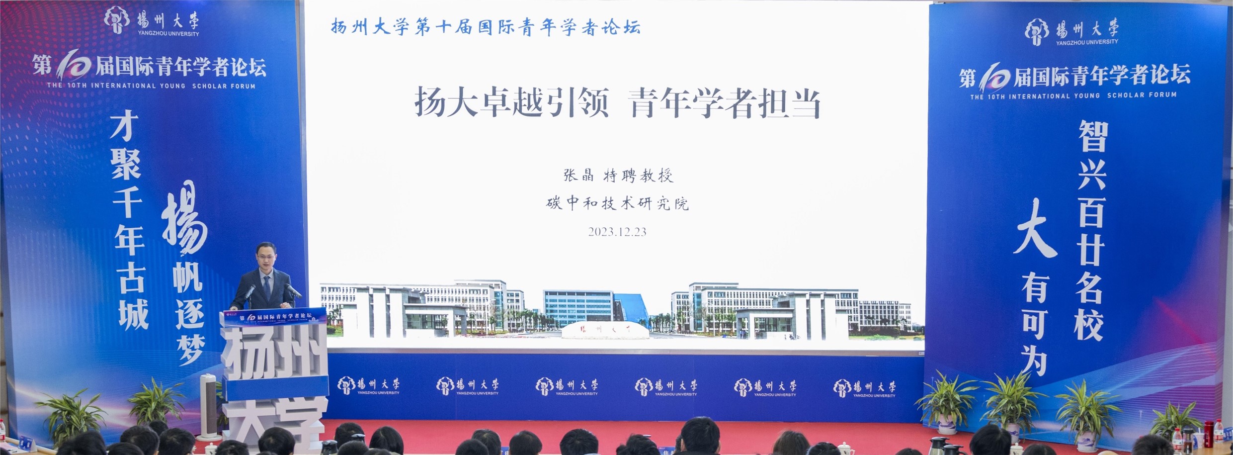 2023年12月23日,扬州大学第十届国际青年学者论坛隆重召开。本届论坛采用“线上+线下”相结合的方式进行,通过网络进行全球直播。来自全球23个国家和地区、104所知名高校和科研机构的140名青年学者参加了论坛。学校人才工作领导小组成员、相关学院(实体研究院)和有关部门负责人,学校高层次人才代表等参加活动。校党委书记焦新安致辞,校长丁建宁作主旨报告。校党委副书记周如军主持开幕式。