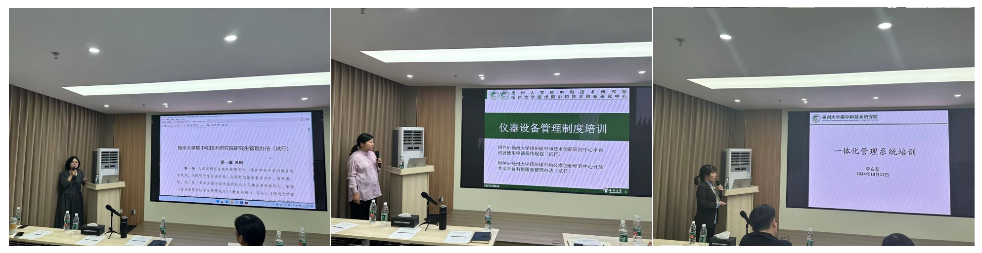 接着,王爱丽等老师分别进行了系统培训,内容涵盖了研究生管理制度、设备平台使用、实验室安全以及内部一体化系统等,帮助学生更好地开展学习和科研工作。