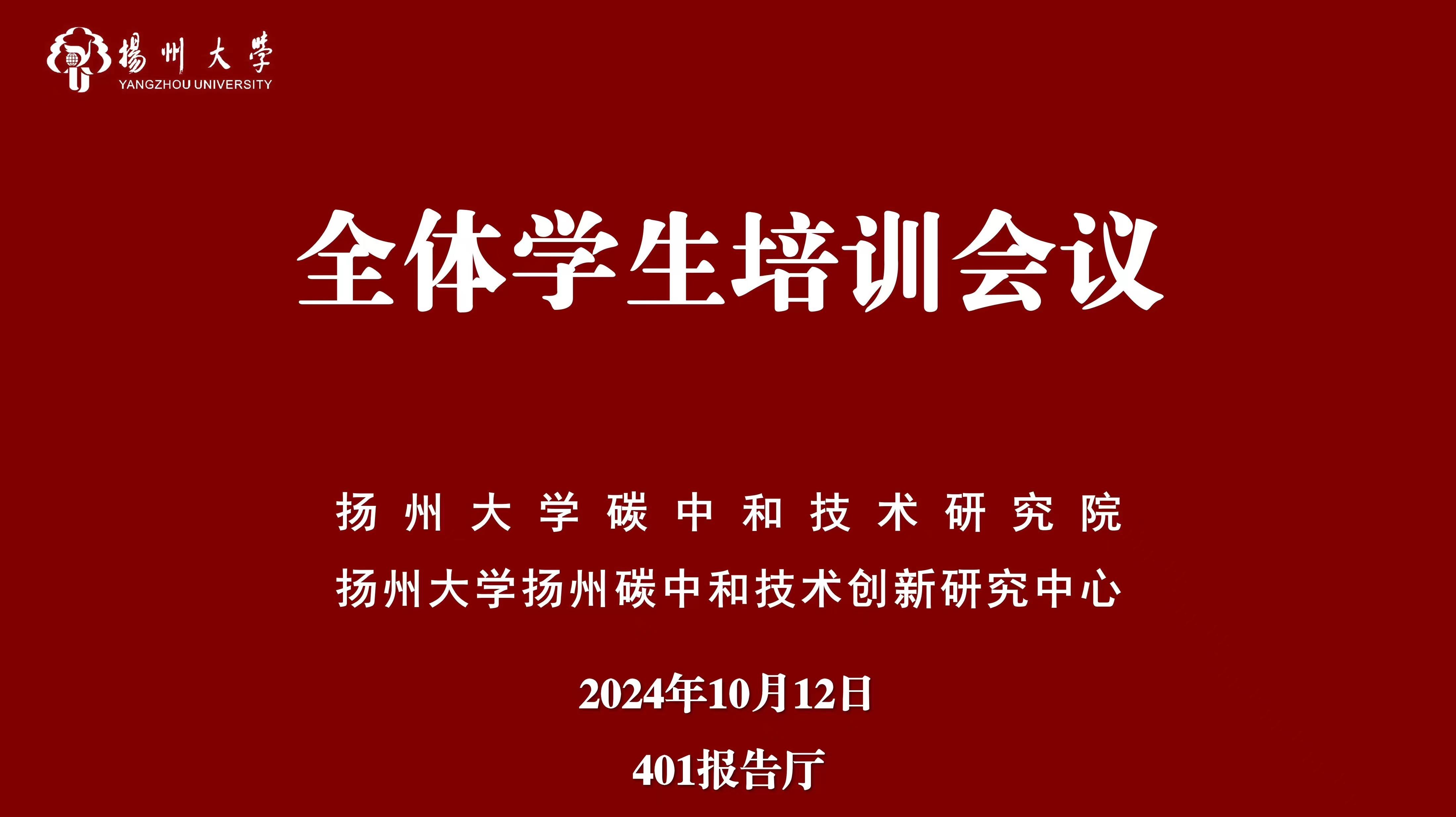 扬州大学碳中和技术研究院于2024年10月12日在校外中心成功举办了全体学生培训会议。此次会议20余位教师和80余名学生共同参与。
