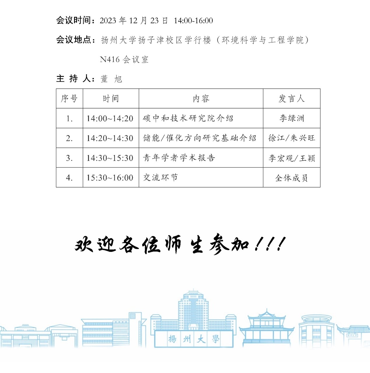 扬州大学第十届国际青年学者论坛-碳中和技术研究院分论坛会议日程